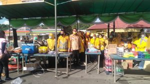 PANGKALPINANG, LASPELA – Pengurus Daerah Kolektif (PDK) Himpunan Pengusaha Kosgoro (HPK) 1957 bersama Dewan Pengurus Daerah (DPD) Himpunan Pengusaha Kosgoro (HPK) 1957 Provinsi Bangka Belitung (Babel), menggelar pasar murah.