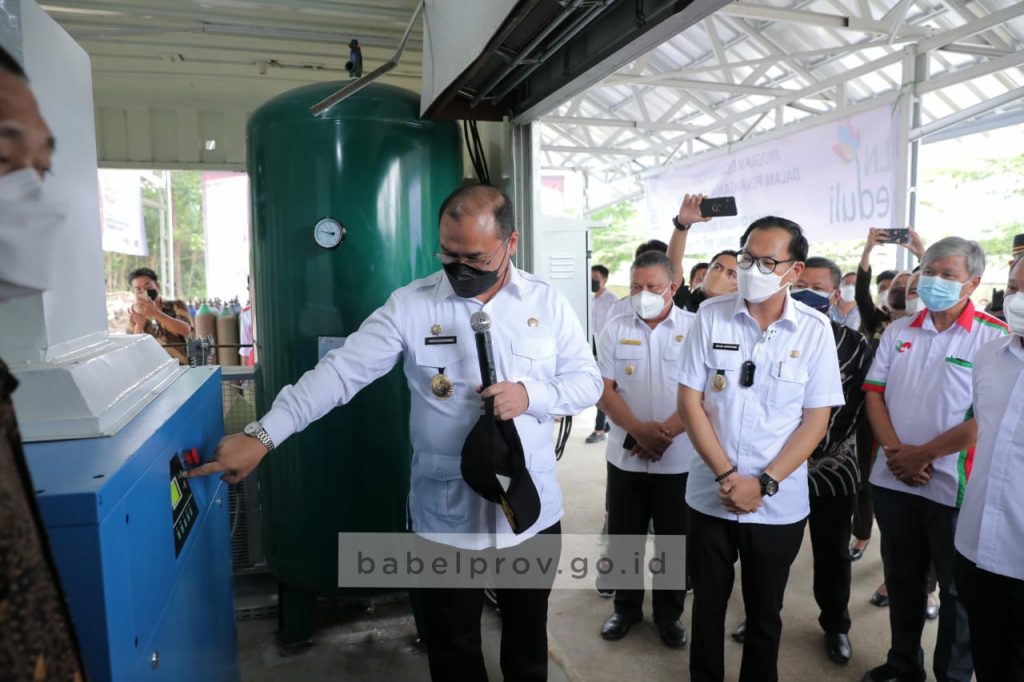 Kegiatan diakhiri peresmian Rumah Oksigen Belitong yang ditandai dengan penandatanganan prasasti dan penekanan tombol sirine tanda dimulainya operasional rumah oksigen oleh Gubernur Erzaldi Rosman.