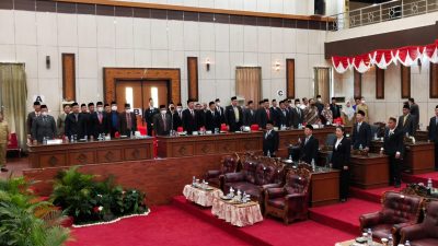 MUNTOK, LASPELA — Dewan Perwakilan Rakyat Daerah (DPRD) Kabupaten Bangka Barat (Babar) menggelar Rapat Paripurna mendengarkan Pidato Kenegaraan Presiden Republik Indonesia (RI) Joko Widodo (Jokowi), dalam rangka memperingati Hari Ulang Tahun (HUT) ke-77 RI, yang berlangsung di Gedung Mahligai Betason II DPRD Babar, Selasa (16/8/22).