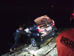 Atas kejadian tersebut tim gabungan yang terdiri dari Basarnas, BPBD, Satpolair serta dibantu warga sekitar mengevakuasi mobil.