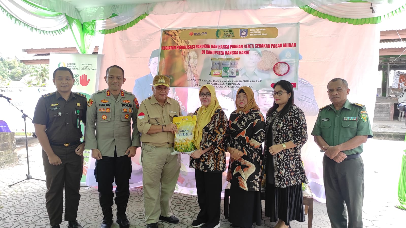 Kegiatan tersebut menggadeng Perusahaan Umum Milik Negara Badan Urusan Logistik (Perum Bulog), yang dihadiri langsung oleh Bupati Babar, H. Sukirman, Ketua TP PKK, Rosmala Sukirman, Kepala Perum Bulog Cabang Bangka, Asfianty, Jajaran Forkopimda Babar, instansi terkait serta tamu undangan lainnya.