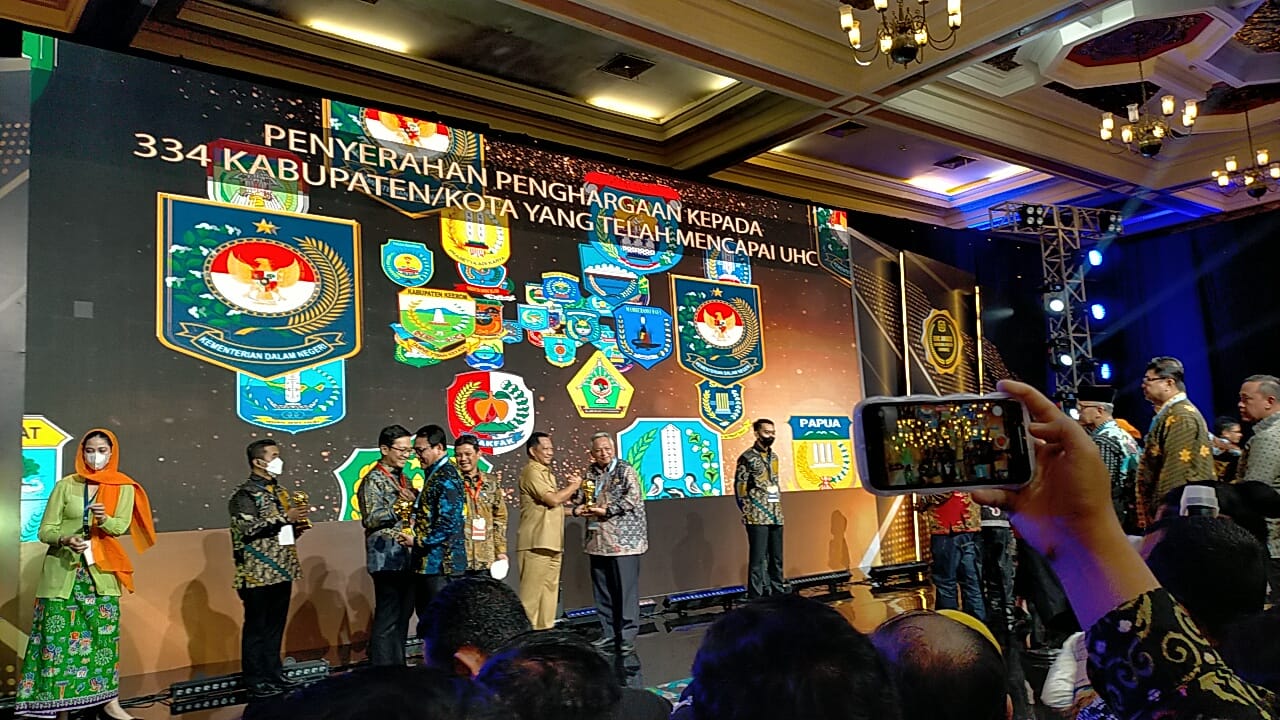 Penghargaan itu, diserahkan langsung oleh Wakil Presiden Republik Indonesia, Ma’ruf Amin bersama Menteri Dalam Negeri, Tito Karnavian kepada Bupati Bangka Barat, Sukirman, atas capaian yang sudah berhasil UHC dan memberikan pelayanan kesehatan secara gratis untuk masyarakat.