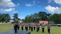 Kapolres Basel AKBP Trihanto Nugroho memimpin jalannya serah terima jabatan di halaman Mapolres Basel, Jumat (17/5/2024).