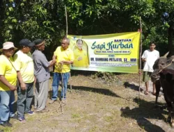 BELITUNG, LASPELA— Menandai Hari Raya Idul Adha 1446 Hijriah/ 2025 M, Ketua Komisi XII DPR RI Fraksi Partai Golkar, Bambang Patijaya menyerahkan dua ekor sapi kurban untuk masyarakat di Kabupaten Belitung Timur dan Kabupaten Belitung.