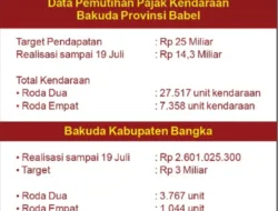“Program pemutihan ini telah dilaksanakan sejak 1 Mei. Dan sampai 19 Juli kita telah memperoleh penerimaan Pajak Kendaraan Bermotor (PKB) sebesar Rp14,3 Miliar,” kata Kepala Badan Keuangan Daerah (Bakuda) Provinsi Babel, Muhammad Haris, didampingi Kepala Bidang Pendapatan Asli Daerah (PAD), Rudi di Pangkalpinang, Senin (21/7/2025).