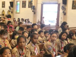 PANGKALPINANG, LASPELA–Keluarga besar SD Theresia I Pangkalpinang, para siswa, guru dan pegawai serta orang tua murid memperingati Hari Pramuka ke 64 dengan merayakan ekaristi di Gereja Katolik Katedral Pangkalpinang. Perayaan ekaristi dipimpin langsung oleh Pastor Paroki Katedral, pastor L. Yustinianus Ta’laleng.