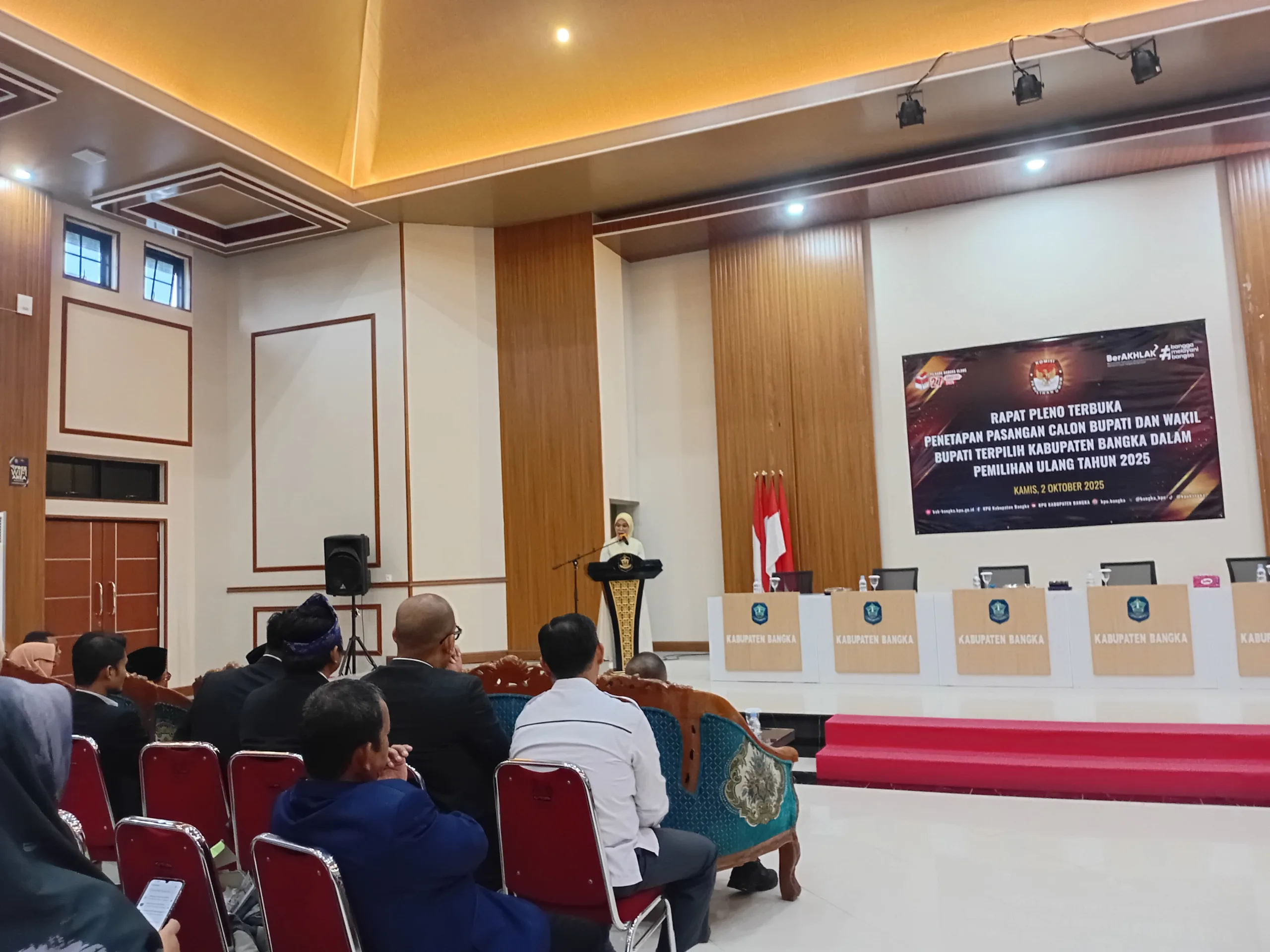 Hal demikian disampaikan saat menghadiri Rapat Pleno Terbuka KPU Bangka yang berlangsung di, Grha Maras, Kamis (2/10/2025).