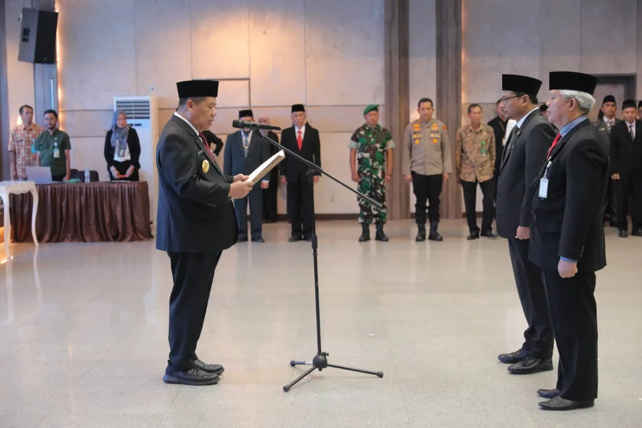 PANGKALPINANG, LASPELA — Gubernur Kepulauan Bangka Belitung (Babel), Hidayat Arsani, baru saja melantik pejabat eselon KI di Lingkungan Pemprov Babel, Sabtu (4/10/2025).