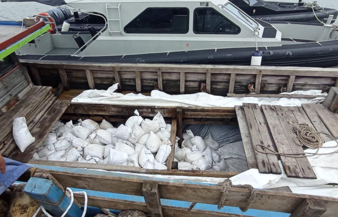 Pasir timah kisaran 7 ton itu, ditangkap dalam sebuah kapal kayu yang bermuatan ikan fermentasi serta terasi, di peraian Pengaram, Bangka Selatan.