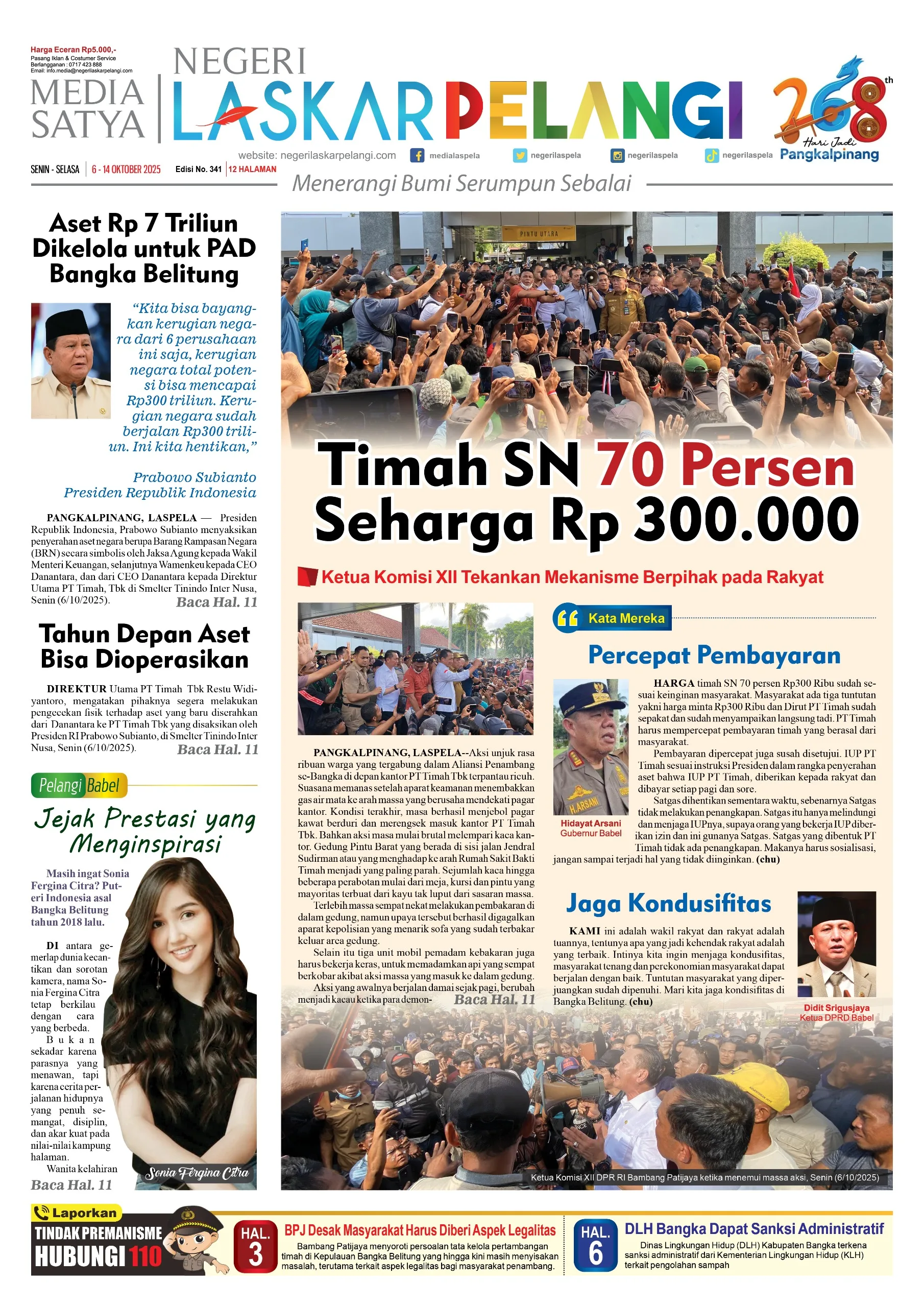 PANGKALPINANG, LASPELA–Demonstrasi yang dilakukan oleh Publik di Bangka Belitung pada tanggal 6 Oktober 2025 kemarin salah satu isu yang penting yakni meminta PT. Timah Tbk untuk membeli pasir timah hasil tambang rakyat yang dianggap sesuai. Hasil dari dialog antara perwakilan massa aksi bersama Dirut PT. Timah Tbk dan steak holder lainnya menyepakati bahwa PT. Timah Tbk sebagai operator pertambangan timah di Indonesia bersedia untuk membeli hasil tambang rakyat sesuai dengan harga pasaran timah dunia, timah SN 70 persen dibeli dengan harga Rp 300.000