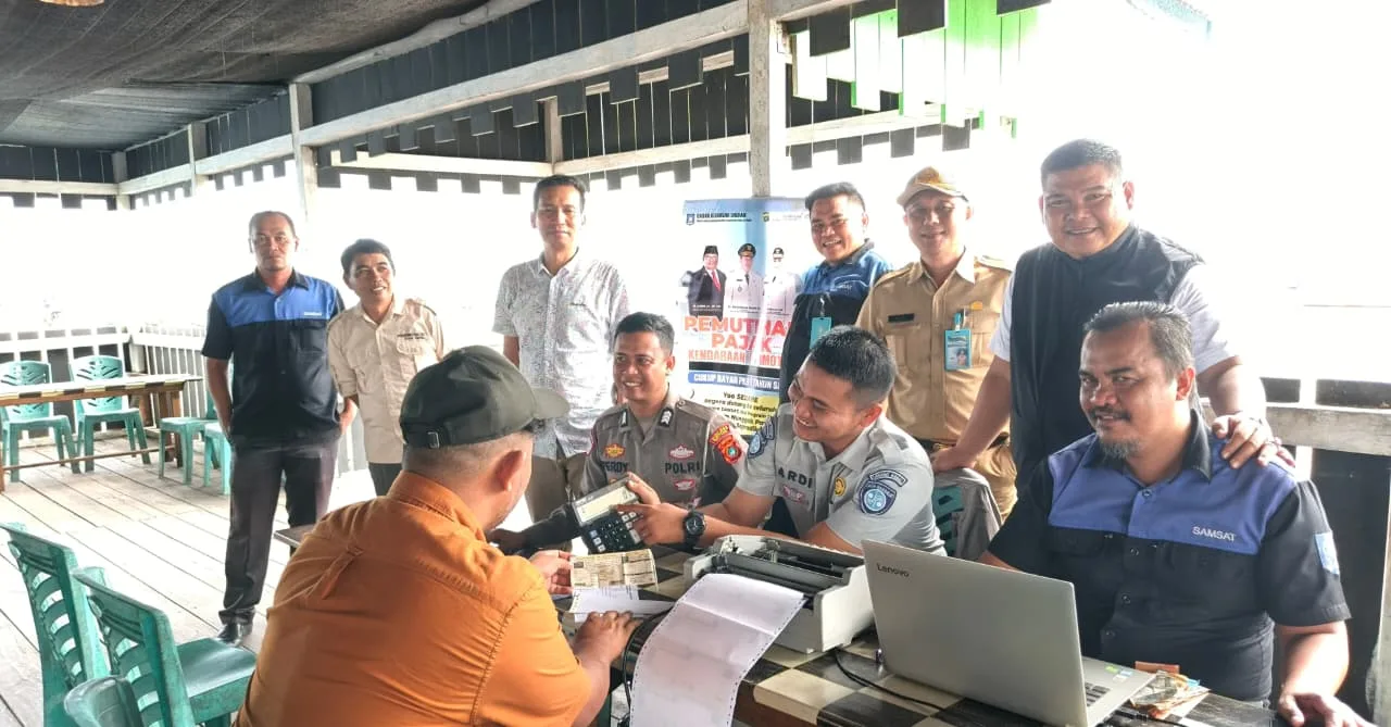 Sejak pagi, beberapa warga sudah menanti kehadiran tim Bakuda untuk membayar pajak kendaraan bermotor di lokasi pelayanan di salah satu warkop di samping Rumah Panggung, Desa Selat Nasik.