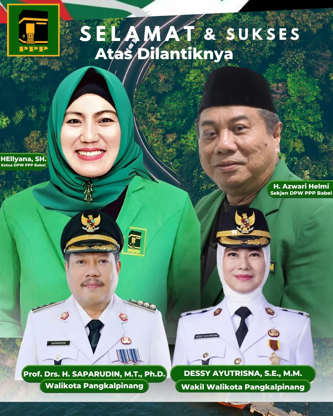 PANGKALPINANG, LASPELA – Ketua DPW Partai Persatuan Pembangunan (PPP) Provinsi Kepulauan Bangka Belitung (Babel), Hellyana, optimistis pasangan Wali Kota dan Wakil Wali Kota Pangkalpinang Prof. Saparudin dan Dessy Ayutrisna mampu membawa perubahan dan kemajuan bagi Kota Pangkalpinang.