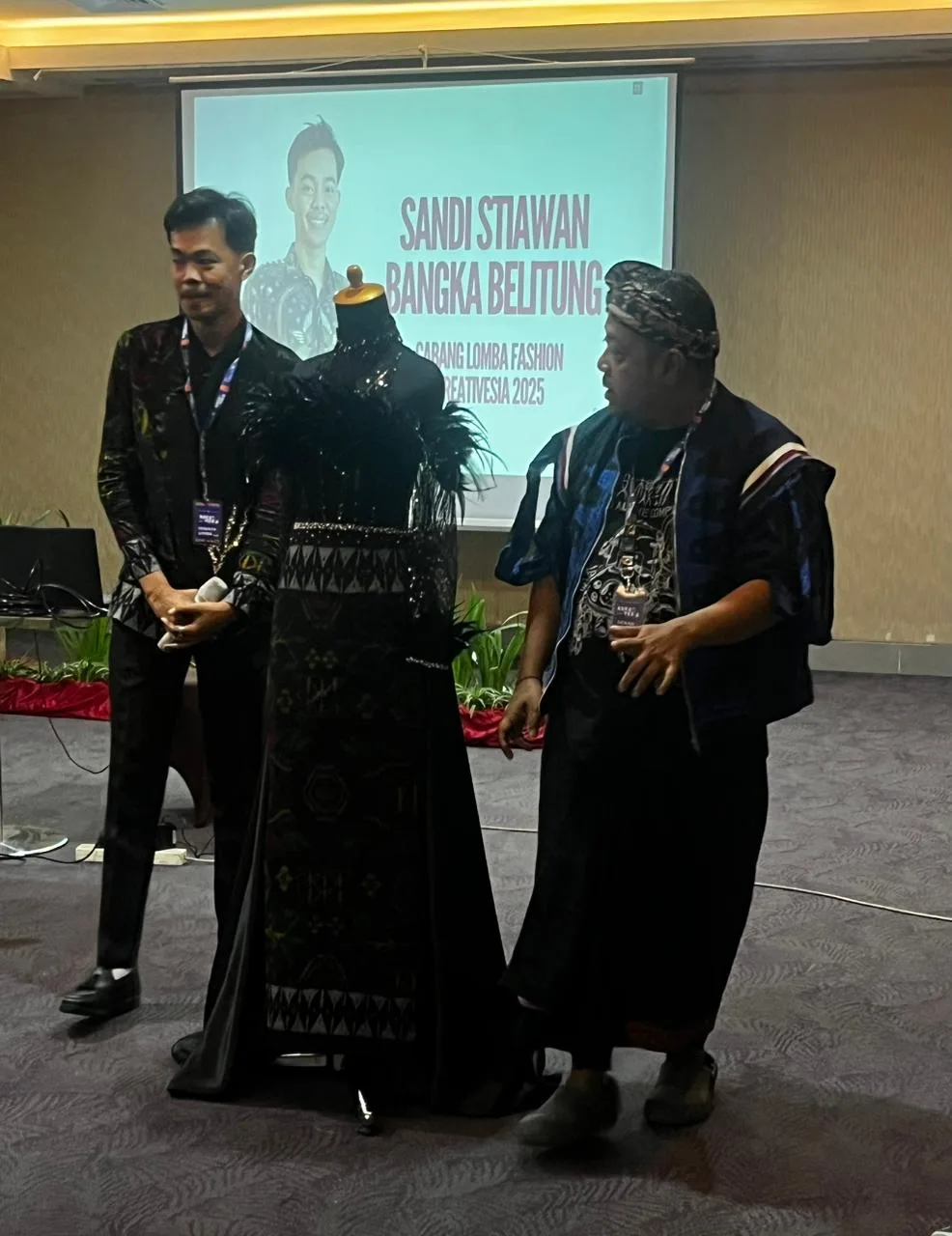 Sandi tampil di bidang fashion dengan karya yang mengangkat kekayaan fauna dan budaya Bangka Belitung.