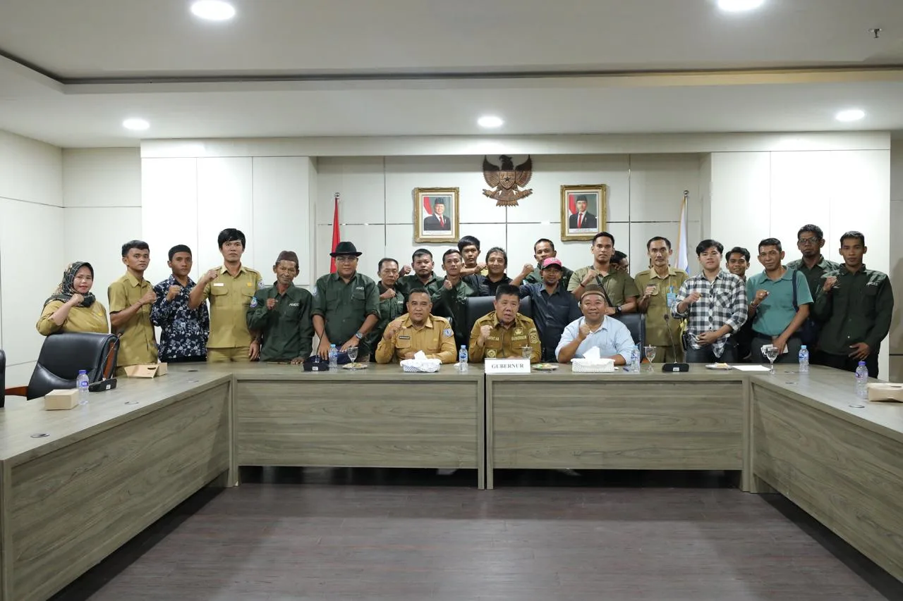 PANGKALPINANG, LASPELA— Gubernur Kepulauan Bangka Belitung (Babel) Hidayat Arsani menerima audiensi rombongan perangkat desa se-Kecamatan Lepar, Kabupaten Bangka Selatan, dalam rangka mencari solusi atas sengketa lahan antara masyarakat dengan pihak perusahaan perkebunan kelapa sawit PT Swarna Nusa Sentosa (SNS). Pertemuan berlangsung di Ruang Tanjung Pendam, Kantor Gubernur Babel, Selasa (21/10/2025).