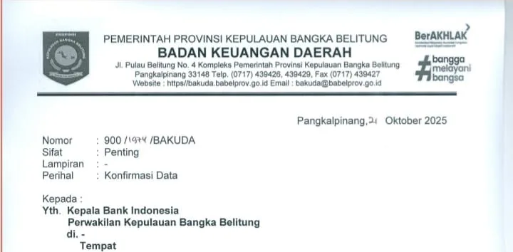 Surat yang dilayangkan oleh Bakuda Bangka Belitung tertanggal 21 Oktober 2025, ditandatangani langsung oleh Kepala Bakuda Babel Muhammad Haris yang ditujukan kepada Kepala Bank Indonesia Perwakilan Provinsi Kepulauan Bangka Belitung.