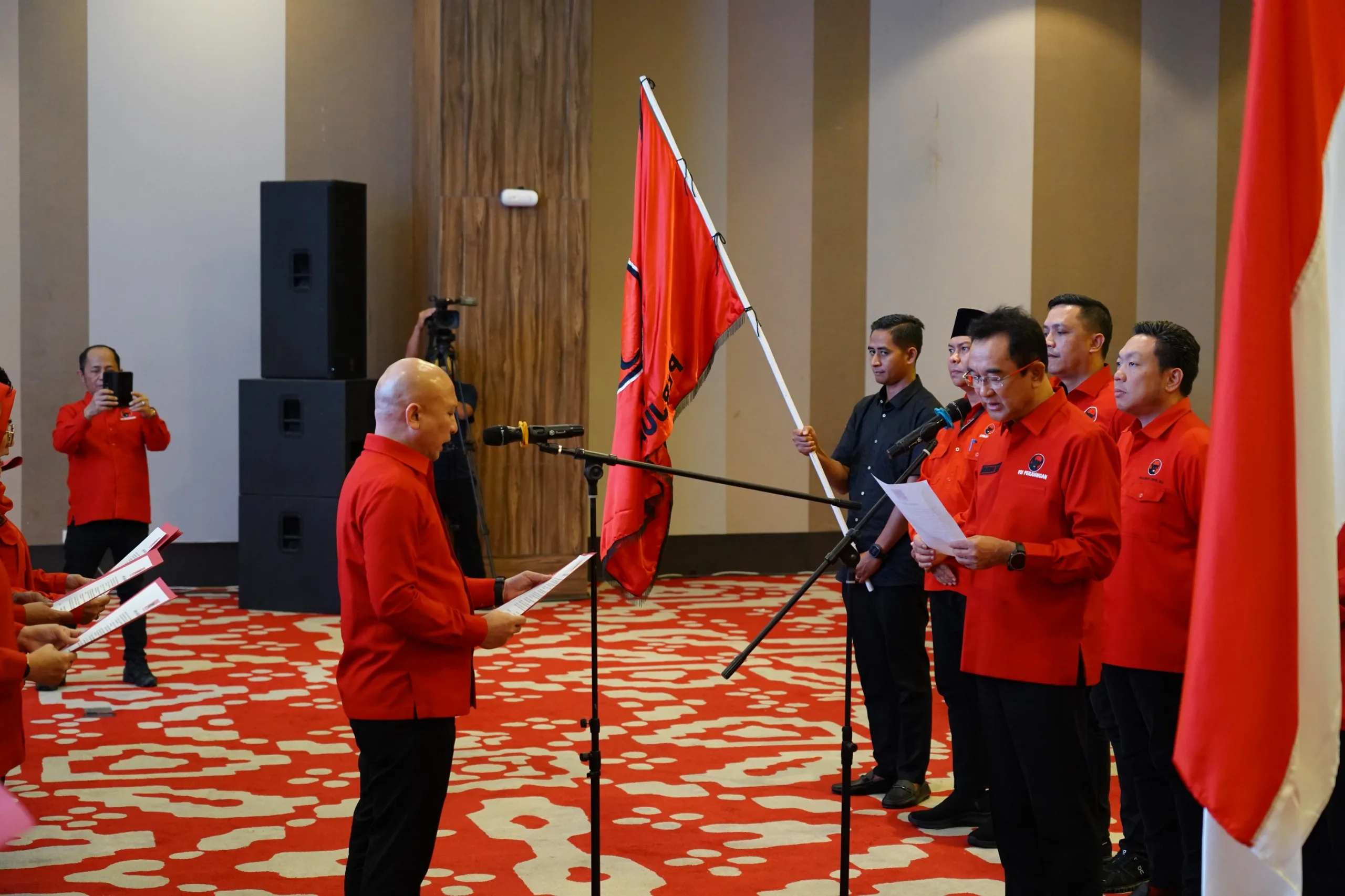 Proses pelantikan dipimpin langsung oleh Wakil Bendahara Umum DPP PDI Perjuangan Rudianto Tjen dengan dihadiri Ketua Bidang Reformasi Hukum dan HAM DPP PDI Perjuangan, Yasonna H. Laoly, Kepala dan Wakil Kepala daerah PDI Perjuangan Babel serta anggota dan pengurus PDIP daerah maupun cabang yang berlangsung di hotel Grand Safran Pangkalpinang, Sabtu (25/10/2025).