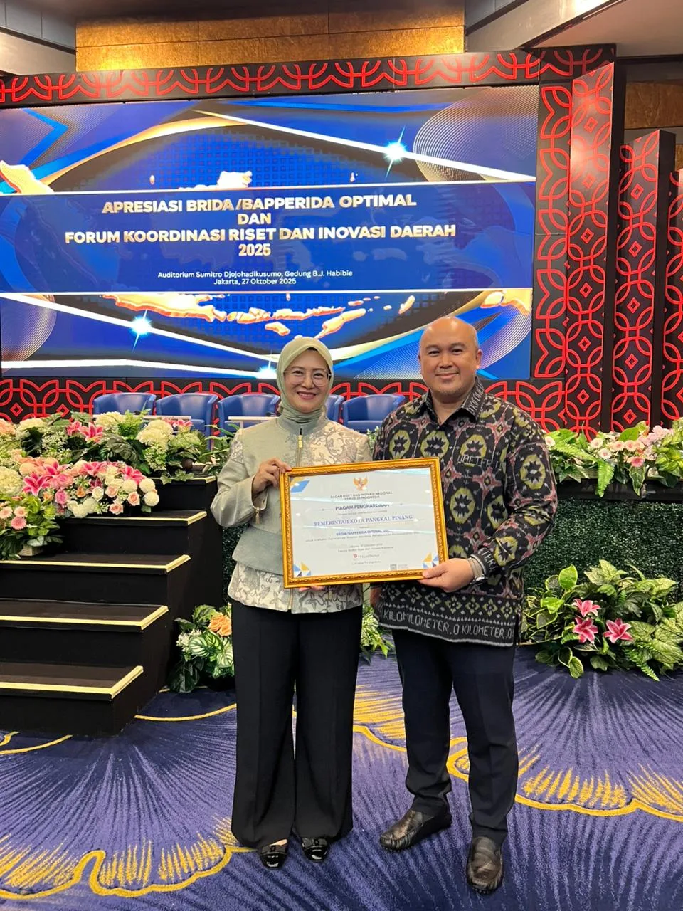 Upaya nyata tersebut mengantarkan Pangkalpinang meraih Apresiasi BRIDA/BAPPERIDA Optimal Tahun 2025 dari Badan Riset dan Inovasi Nasional (BRIN).