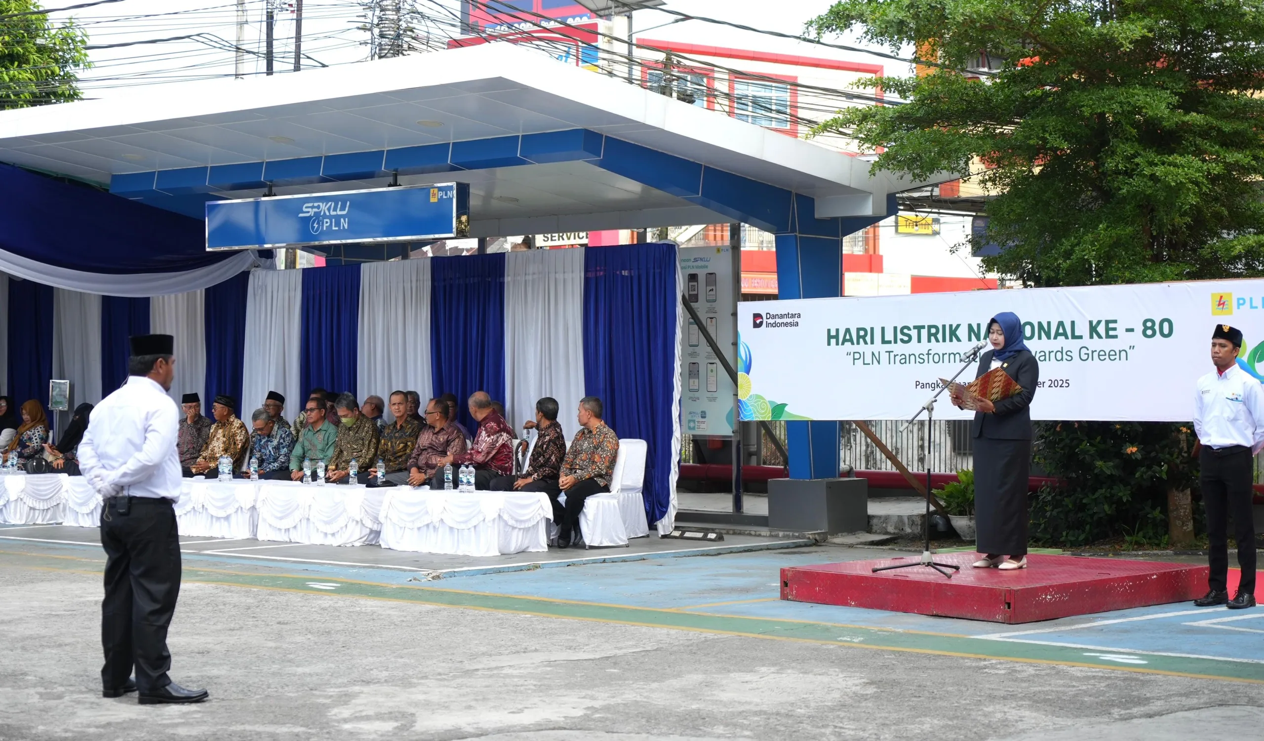 PANGKALPINANG, LASPELA–PT PLN (Persero) Unit Induk Wilayah Bangka Belitung bersama PLN Group, Ikatan Pensiunan PLN (IPPLN), dan Persatuan Ibu Karyawan dan Keluarga PLN (PIKK) menggelar Upacara Peringatan Hari Listrik Nasional (HLN) ke-80 di halaman Kantor PLN UIW Babel, Pangkalpinang, Senin (27/10).