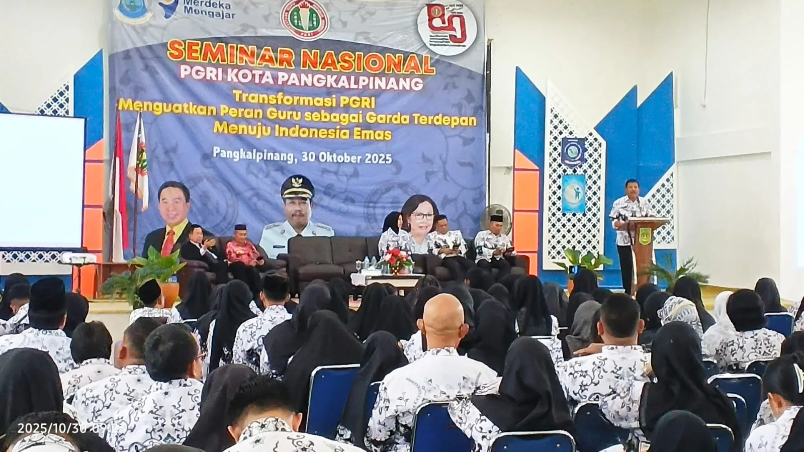dalam sambutan Seminar Nasional PGRI Kota Pangkalpinang yang digelar di Aula SMA Negeri 2 Pangkalpinang, Kamis (30/10/2025).