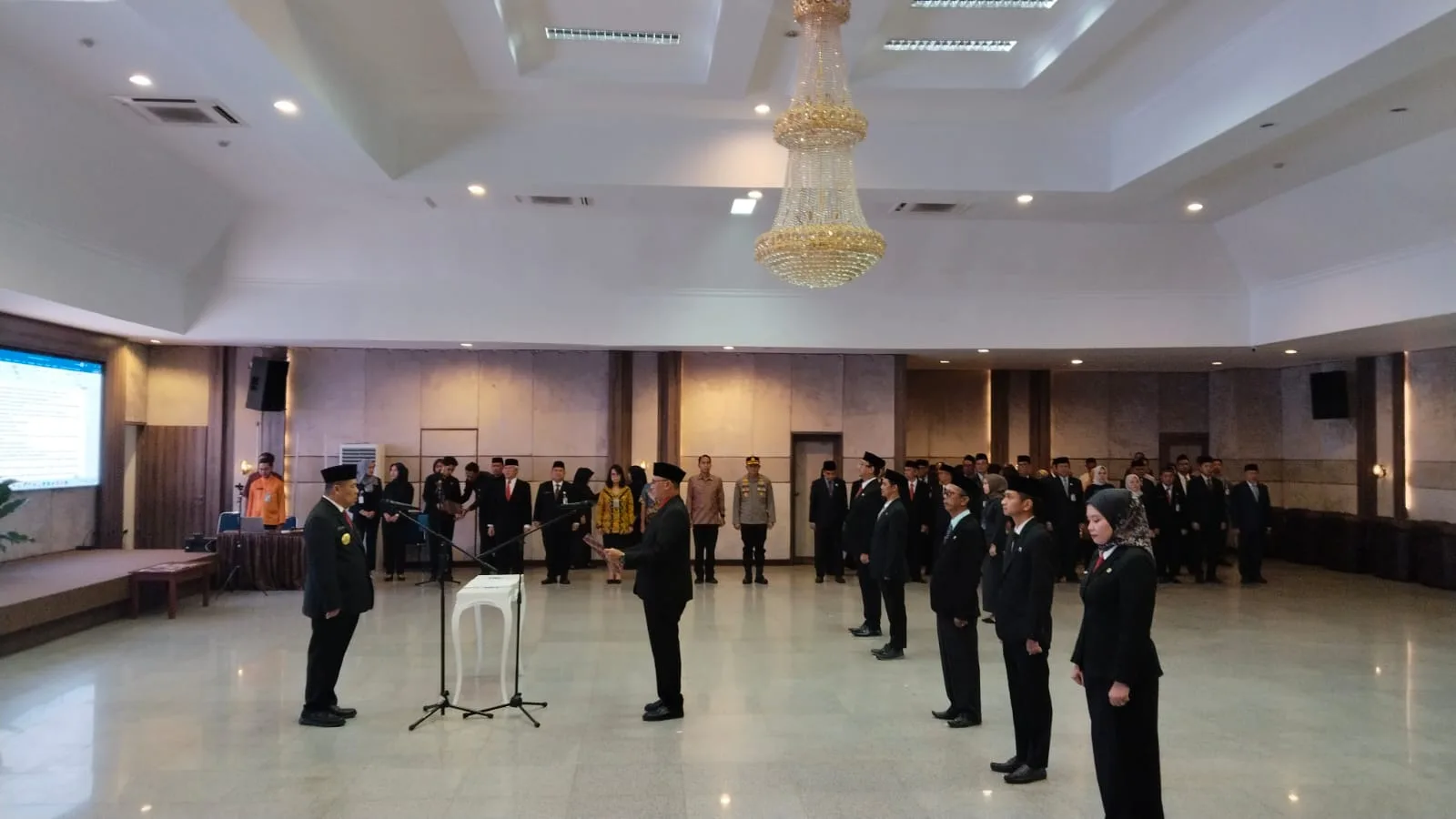 Caption: Gubernur Babel Hidayat Arsani saat melantik 8 Aparatur Sipil Negara (ASN) di lingkungan Pemerintah Provinsi Kepulauan Bangka Belitung, Jumat (14/11/2025)