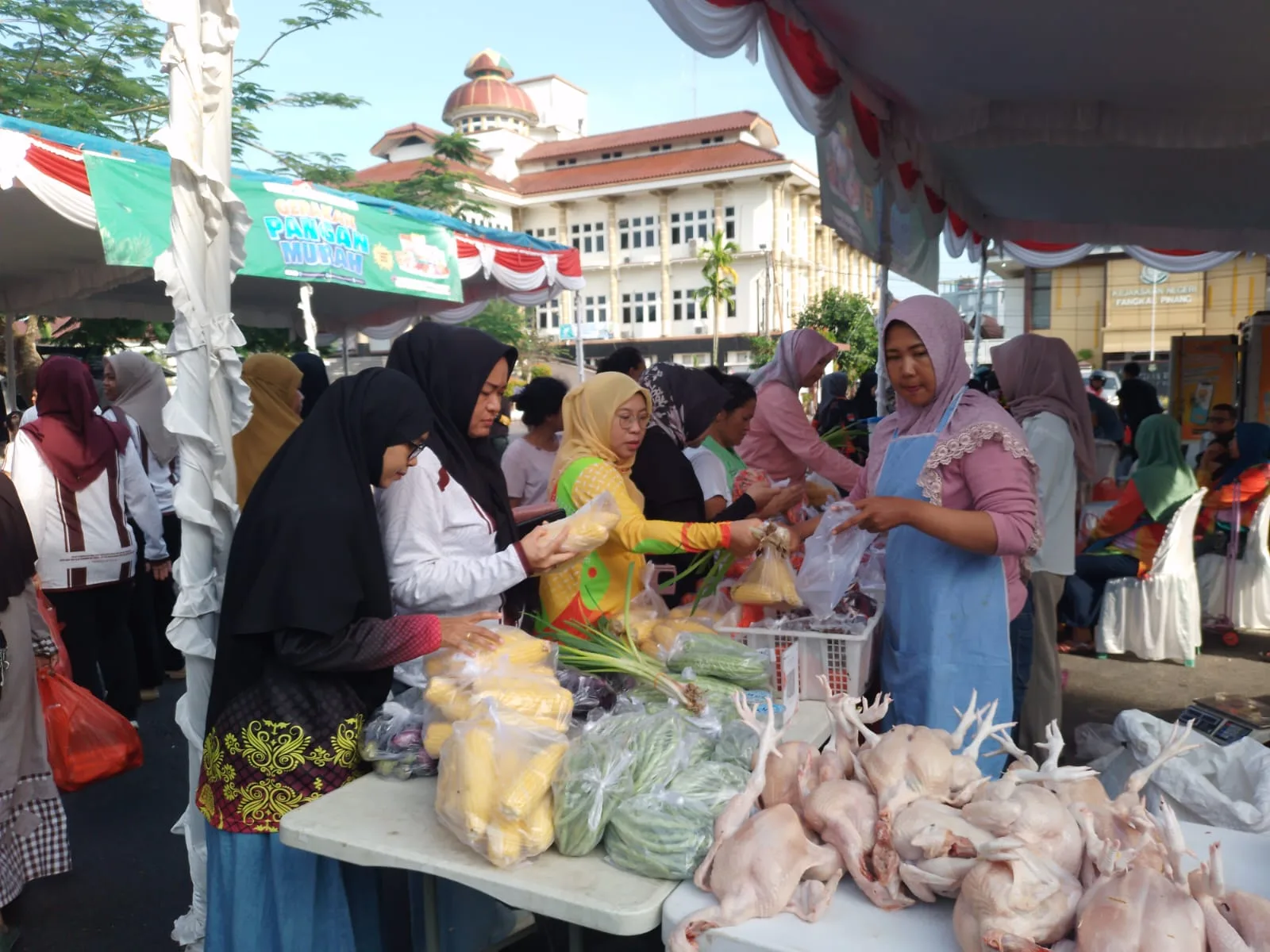PANGKALPINANG, LASPELA — Pemerintah Kota Pangkalpinang menggelar Gerakan Pangan Murah (GPM) di halaman Kantor Wali Kota dan langsung menarik antusiasme masyarakat sejak pagi.