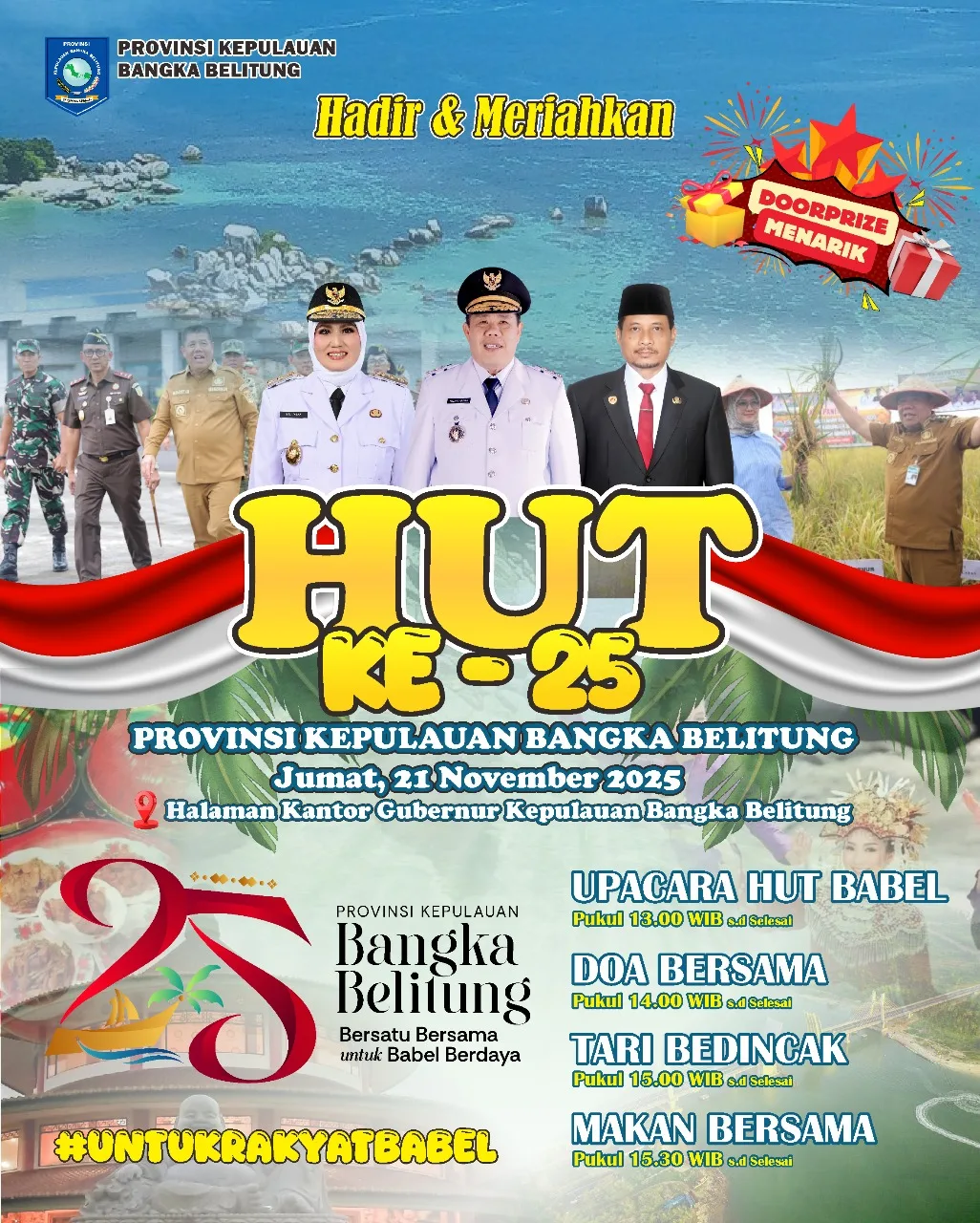PANGKALPINANG, LASPELA–Sehubungan dengan penyelenggaraan Upacara Hari Ulang Tahun Provinsi Kepulauan Bangka Belitung ke-25 yang akan dilaksanakan pada Jumat, 21 November 2025 pukul 14.00 WIB di Lapangan Kantor Gubernur serta kegiatan Senam Bedincak yang diperkirakan dihadiri sekitar 10.000 peserta, maka akan dilakukan penutupan sejumlah ruas jalan.