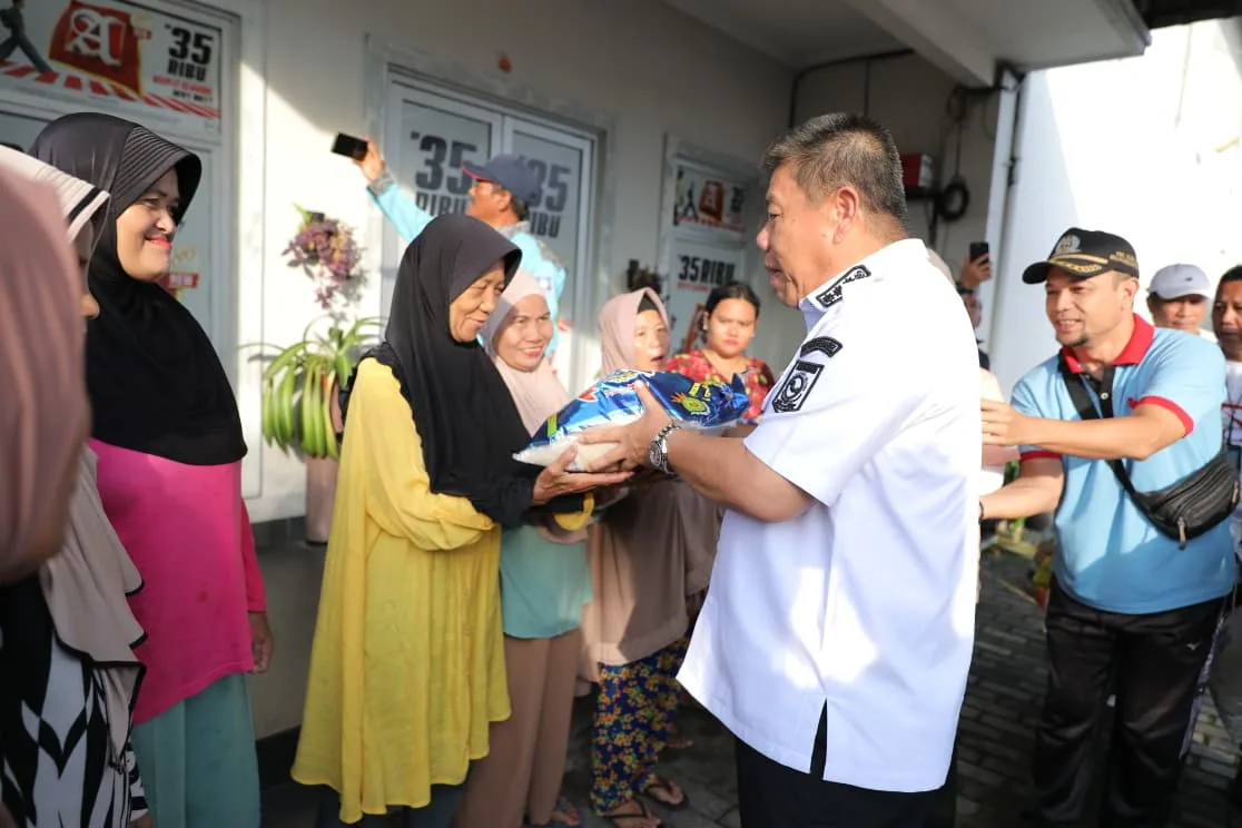 PANGKALPINANG, LASPELA – Giliran masyarakat sekitaran Pasar Kampung Asam Pangkalpinang menerima sembako berupa beras 5 kilogram dari Pemerintah Provinsi Kepulauan Bangka Belitung dalam rangkaian perayaan Hari Ulang Tahun ke-25 Bangka Belitung, Rabu (26/11/2026).