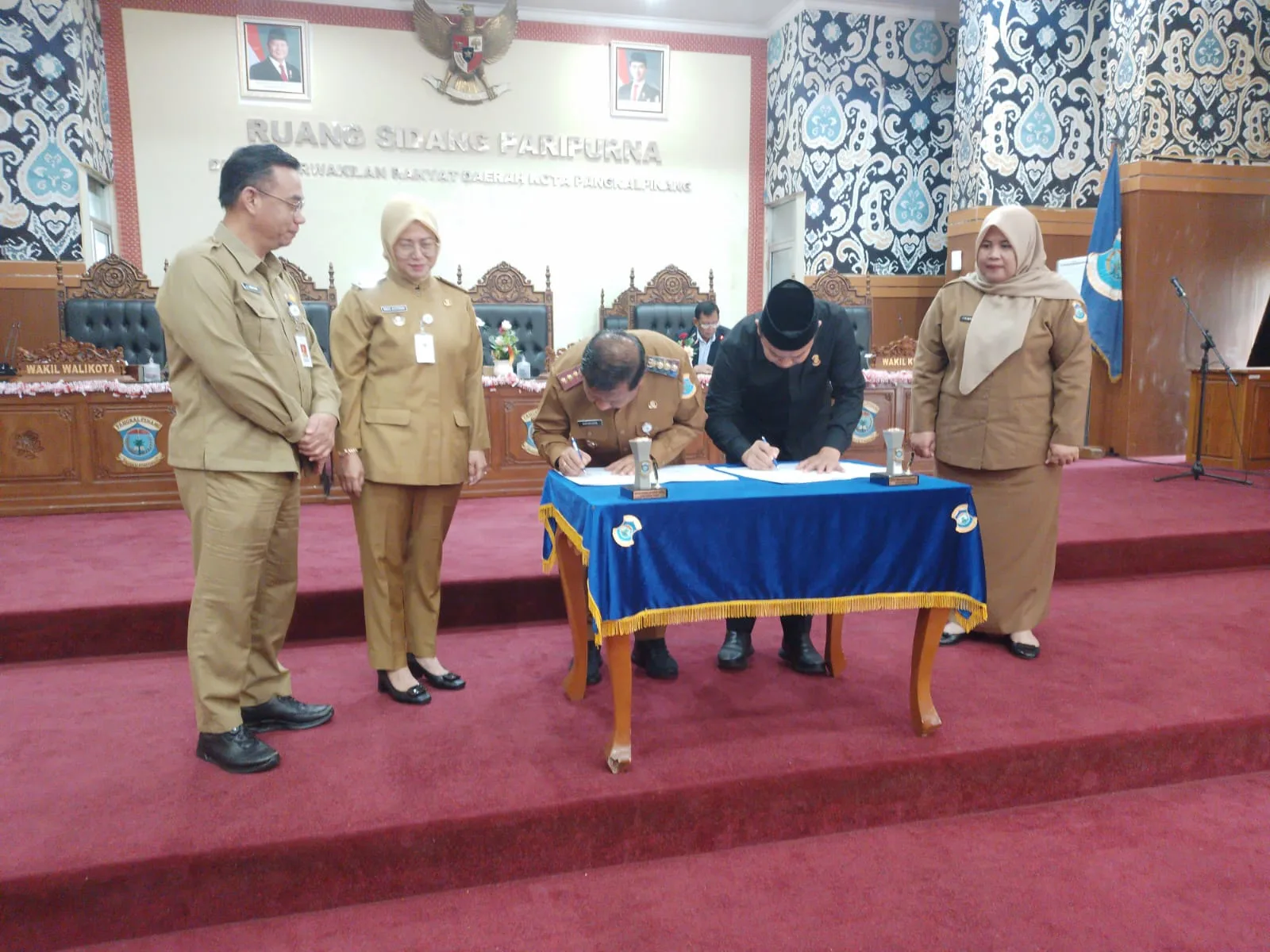 Penandatanganan dilakukan oleh Wali Kota Pangkalpinang, Prof. Saparudin (Udin), bersama Ketua DPRD Kota Pangkalpinang, Abang Hertza.