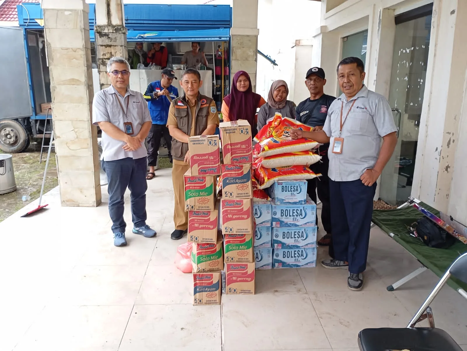 PT Timah memberikan bantuan berupa paket sembako antara lain beras, mi instan, air minum, telur dan kebutuhan pokok lainnya, yang diserahkan langsung oleh Divossion Processing and Rifeneri, Sofian Simangunsong.