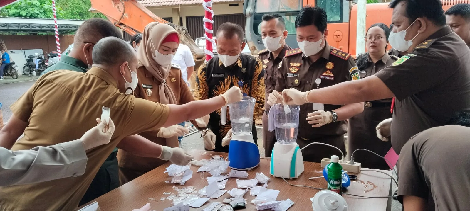 Pemusnahan barang bukti tersebut juga disaksikan dan dilakukan secara langsung oleh Kepala Kejari Basel Sabrul Iman, Kasi Intel Kejari Basel Prima Yuda, Kasi BB, Wakil Bupati Basel Debby Vita Dewi, anggota Kejari Basel.