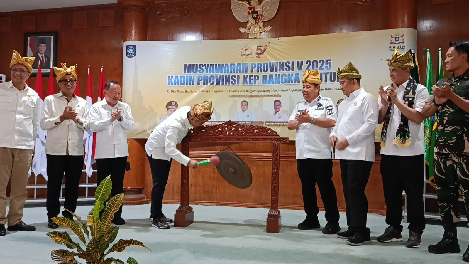 Hal tersebut disampaikannya saat pembukaan Musyawarah Provinsi (Musprov) V KADIN Babel di Auditorium Depati Amir, Hotel Tanjung Pesona Sungailiat, Rabu (10/12/2025).