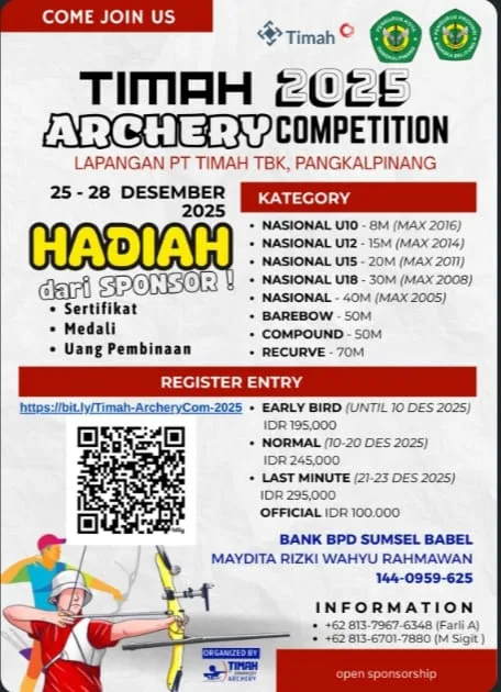 Kejuaraan panahan ini akan digelar pada 25–28 Desember 2025 di Lapangan PT Timah Tbk, Pangkalpinang, dan terbuka bagi atlet dari berbagai daerah di Indonesia.