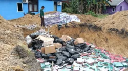 PANGKALPINANG, LASPELA – Ribuan slop rokok ilegal dan puluhan liter minuman keras impor dimusnahkan Bea Cukai Pangkalpinang, Kamis (18/12/2025).