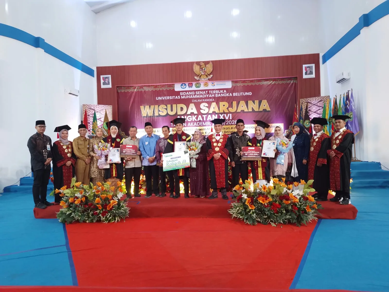 Tiga Wisudawan terbaiak dalam Wisuda Sarjana Angkatan XVI Tahun Akademik 2025/2026, Universitas Muhamadyah Bangka Belitung (Babel) Selasa (23/12/2025).