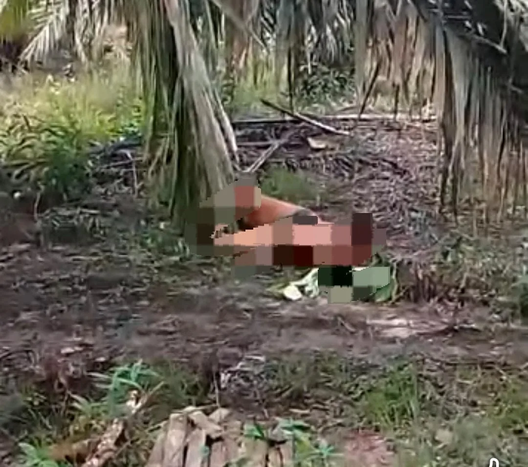 Tangkapan layar di media sosial sesosok mayat yang terbaring di perkebunan sawit.