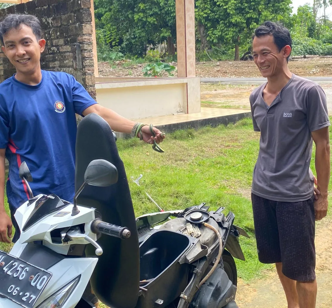 “Setelah mendapat laporan, petugas langsung bergerak dari pos menggunakan armada pemadam kebakaran untuk mengevakuasi ular yang masuk ke dalam box motor,” kata Plt Kabid Damkar Bangka, Zalfika Ammya, Jum’at (2/1/2026).