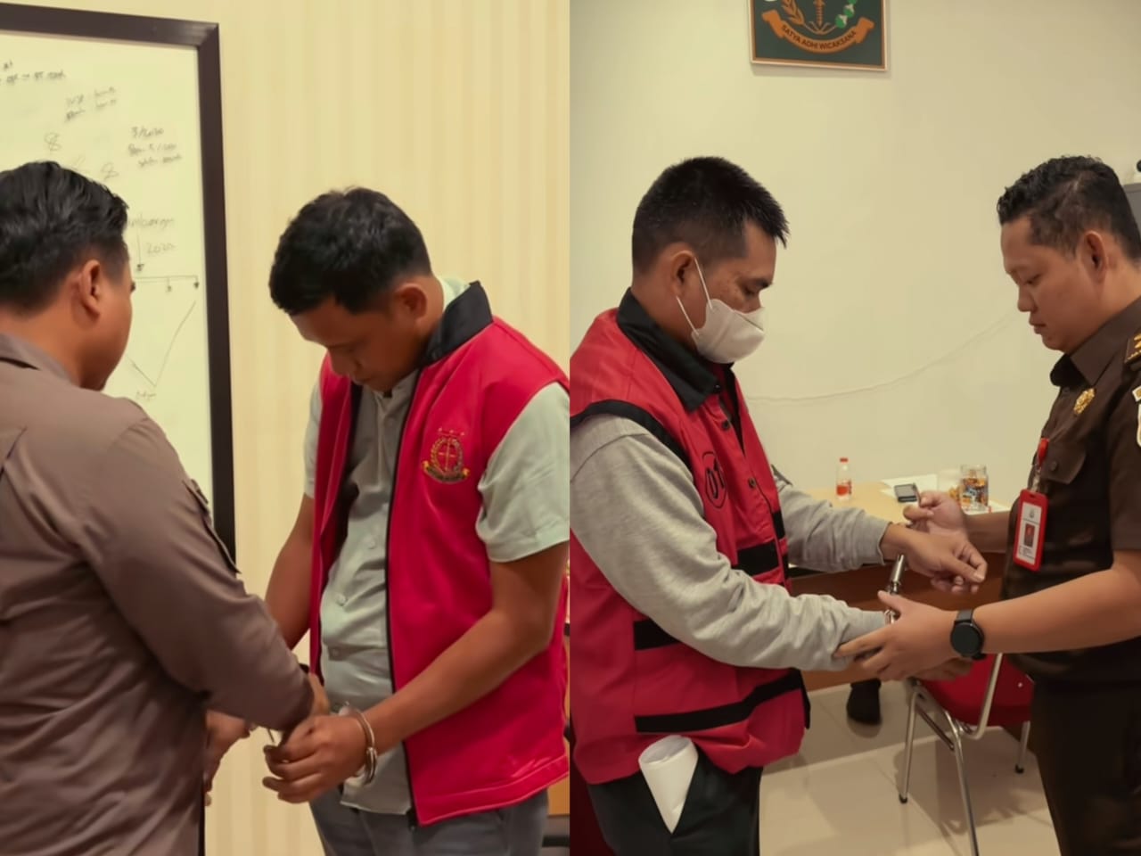 Mengenakan jaket hoodie hitam, tangan terborgol dan rompi pink khas dari Tipidsus Kejari Basel, ia melangkah keluar dari ruang penyidik Tipidsus Kejari usai dicek kesehatan sebelum digelandang ke Lapas Tua Tunu Pangkalpinang pada Rabu 14 Januari 2026 sekira pukul 20.00 WIB.