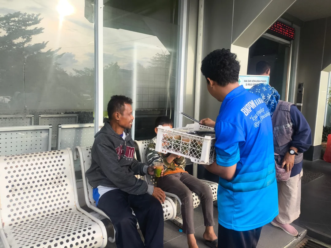 SUNGAILIAT, LASPELA — Dewan Pengurus Daerah (DPD) Badan Komunikasi Remaja Masjid Indonesia (BKPRMI) Kabupaten Bangka membagikan takjil gratis kepada tenaga kesehatan (nakes), pasien, serta keluarga pasien di RSUD Depati Bahrin Sungailiat.