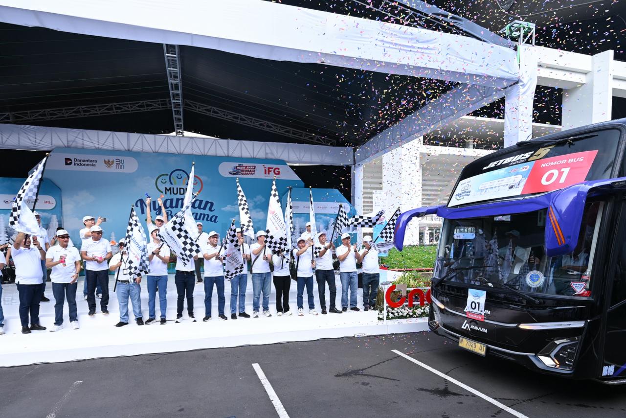 pimpinan IFG dan pemangku kepentingan terkait, dilanjutkan dengan penyerahan simbolis atribut mudik kepada perwakilan peserta, serta pelepasan armada bus secara seremonial yang menandai dimulainya perjalanan para pemudik menuju kota