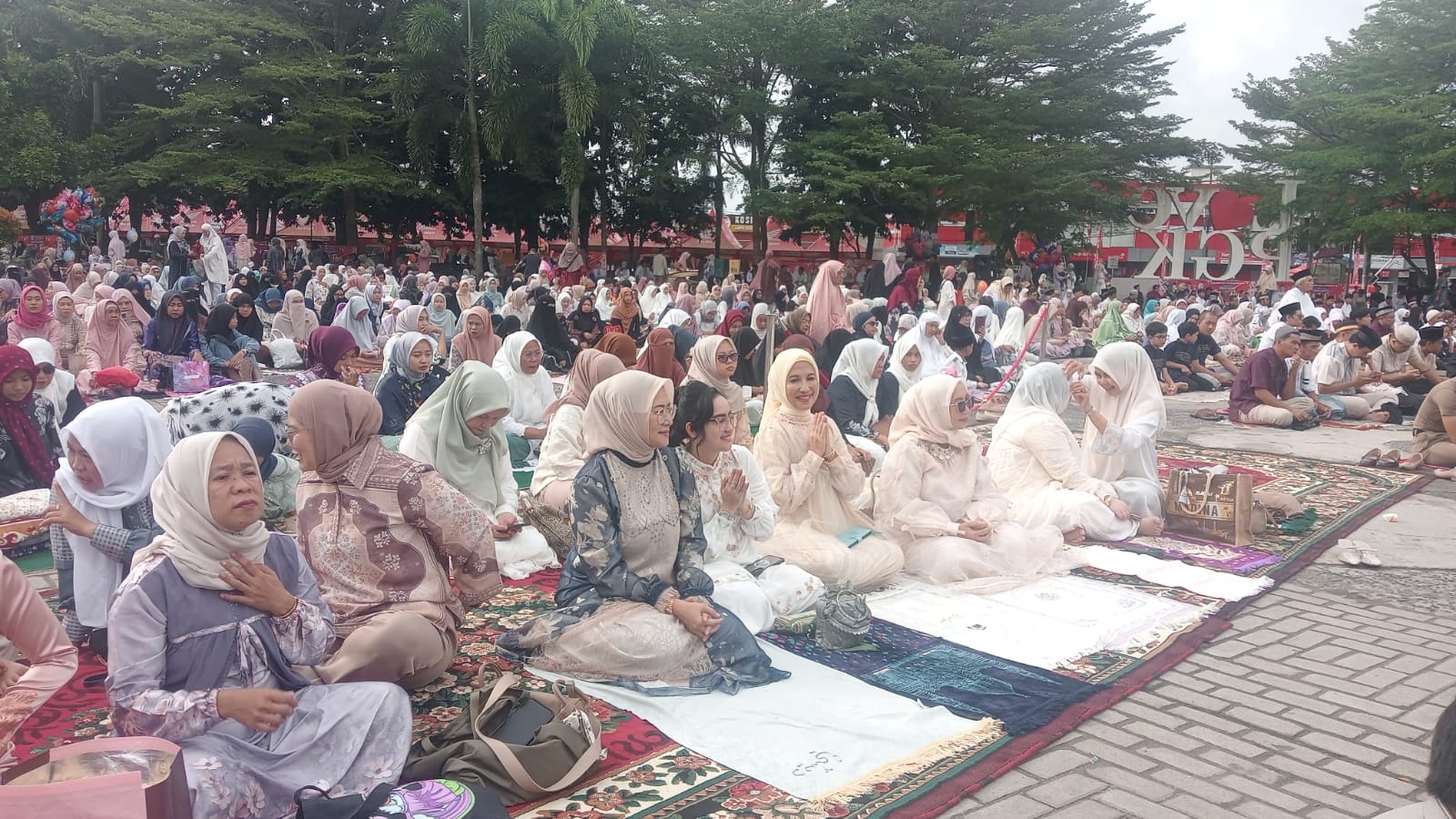 Kehadiran jemaah dari berbagai penjuru kota menciptakan pemandangan lautan manusia yang menyatu dalam suasana khidmat dan penuh kebersamaan.