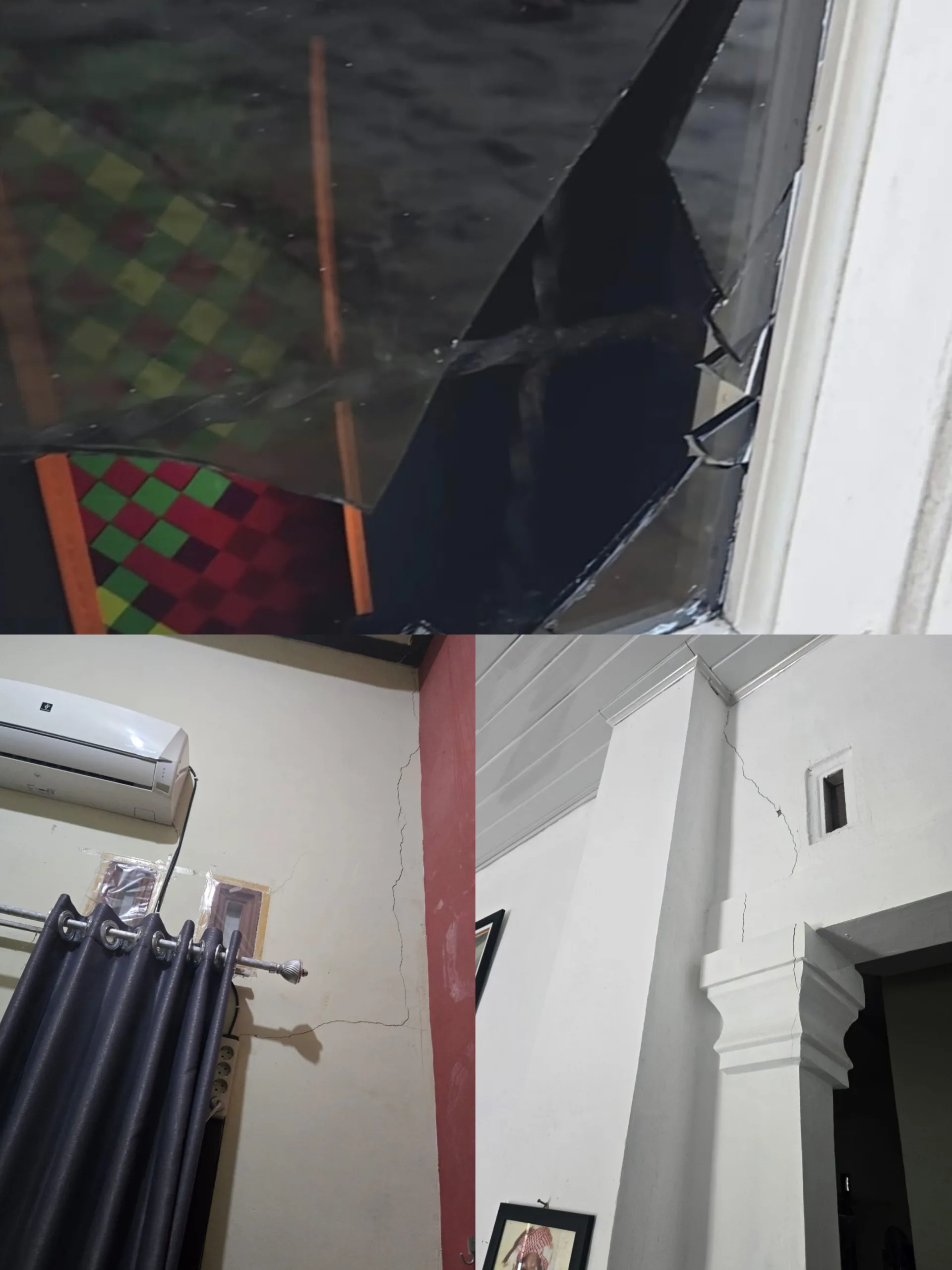 Kaca jendela hingga dinding retak jadi bukti dahsyatnya ledakan tersebut.