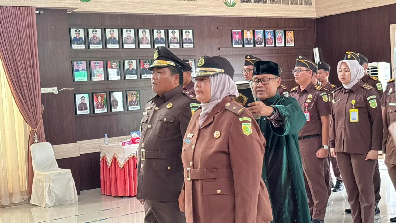 KOBA, LASPELA – Kajari Bangka Tengah, Abvianto Syaifulloh melantik dan mengambil sumpah jabatan struktural terhadap Wika Hawasara, sebagai Kasi Pemulihan Aset dan Pengelolaan Barang Bukti.