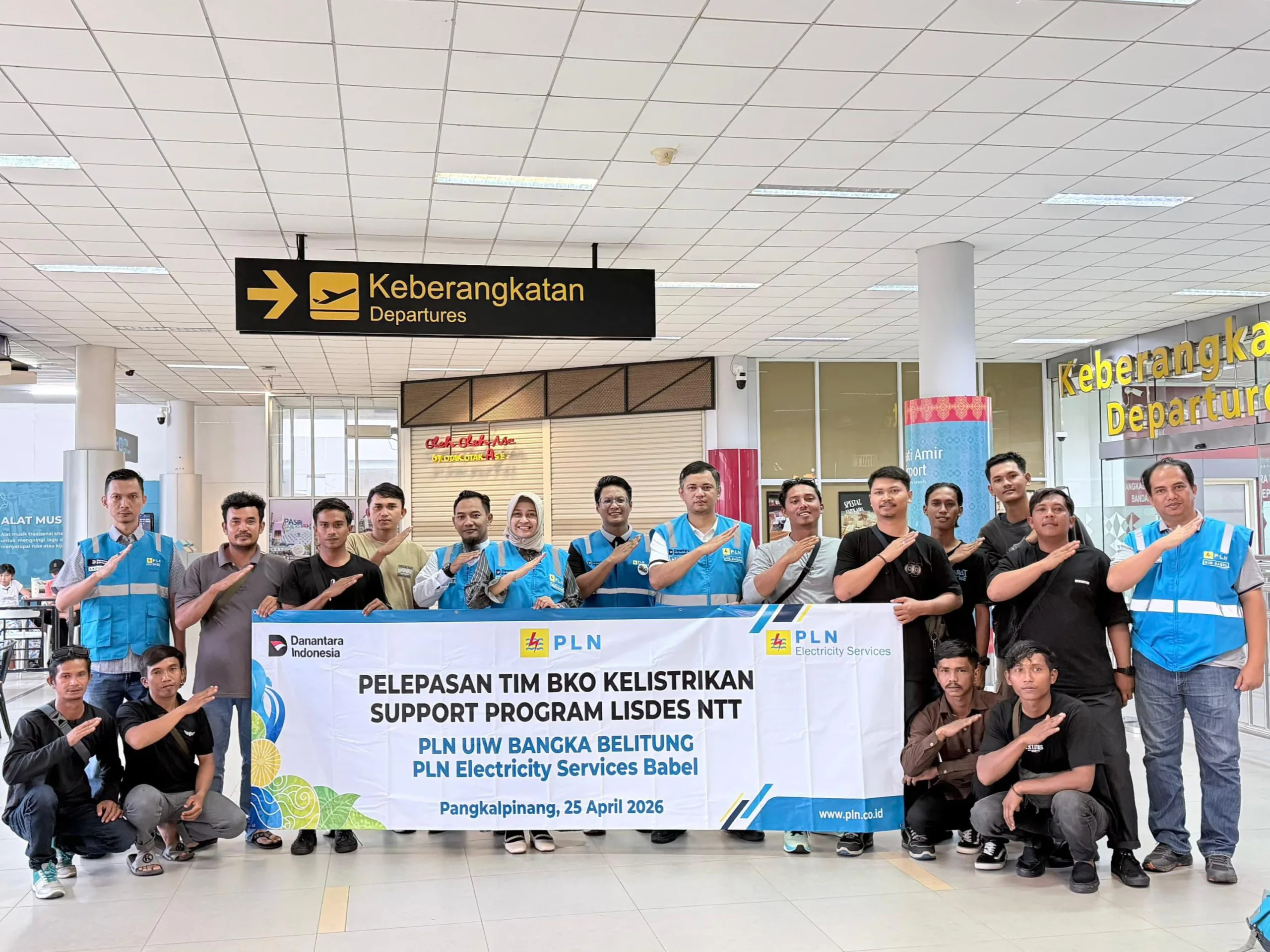 Prosesi pelepasan tim teknis tersebut dipimpin langsung oleh jajaran manajemen di Bandara Depati Amir, Pangkalpinang, pada Sabtu (25/4/2026). Kesepuluh personel ini merupakan tenaga pemeliharaan teknis (hartek) terpilih dari berbagai unit operasional PLN Babel dan PLN Electricity Services Babel. Mereka akan ditempatkan di Waingapu, Kabupaten Sumba Timur, sebagai pasukan garda depan yang menyokong penuh Program Listrik Desa (Lisdes) 2026.