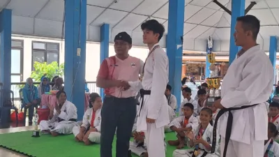 SUNGAILIAT, LASPELA — Qaishar Farel, siswa asal SMAN 1 Sungailiat berhasil meraih peringkat 1 Shukaido…